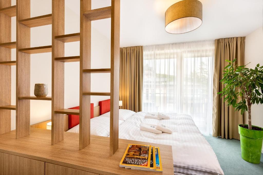 HREBIENOK RESORT pozostáva z dvoch samostatných budov. Depandance HR1 bola postavená ako prvá a zodpovedá štandardu 3-hviezdičiek. Novšia budova HR2 spĺňa 4-hviezdičkový štandard. Štúdiá a Apartmány KLASIK nájdete v Depandance HR1. Moderne zariadené apartmány a štúdiá KOMFORT a LUX sa nachádzajú v novšej budove HR2.