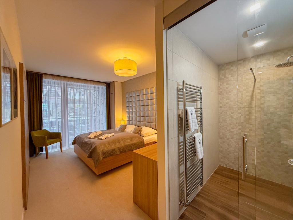 Priestranný a luxusný apartmán v centre Starého Smokovca. Apartmán ponúka obývačku a 2 samostatné spálne. Kuchyňa a jedálenský kút sú súčasťou obývačky. Samostatná toaleta a kúpeľňa. Je vhodný pre rodiny s deťmi alebo 2 páry.