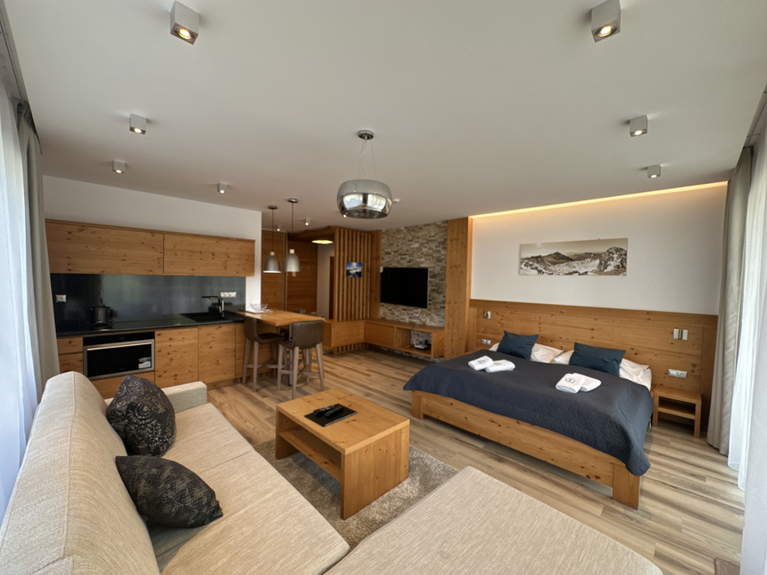 HREBIENOK RESORT pozostáva z dvoch samostatných budov. Depandance HR1 bola postavená ako prvá a zodpovedá štandardu 3-hviezdičiek. Novšia budova HR2 spĺňa 4-hviezdičkový štandard. Štúdiá a Apartmány KLASIK nájdete v Depandance HR1. Moderne zariadené apartmány a štúdiá KOMFORT a LUX sa nachádzajú v novšej budove HR2.